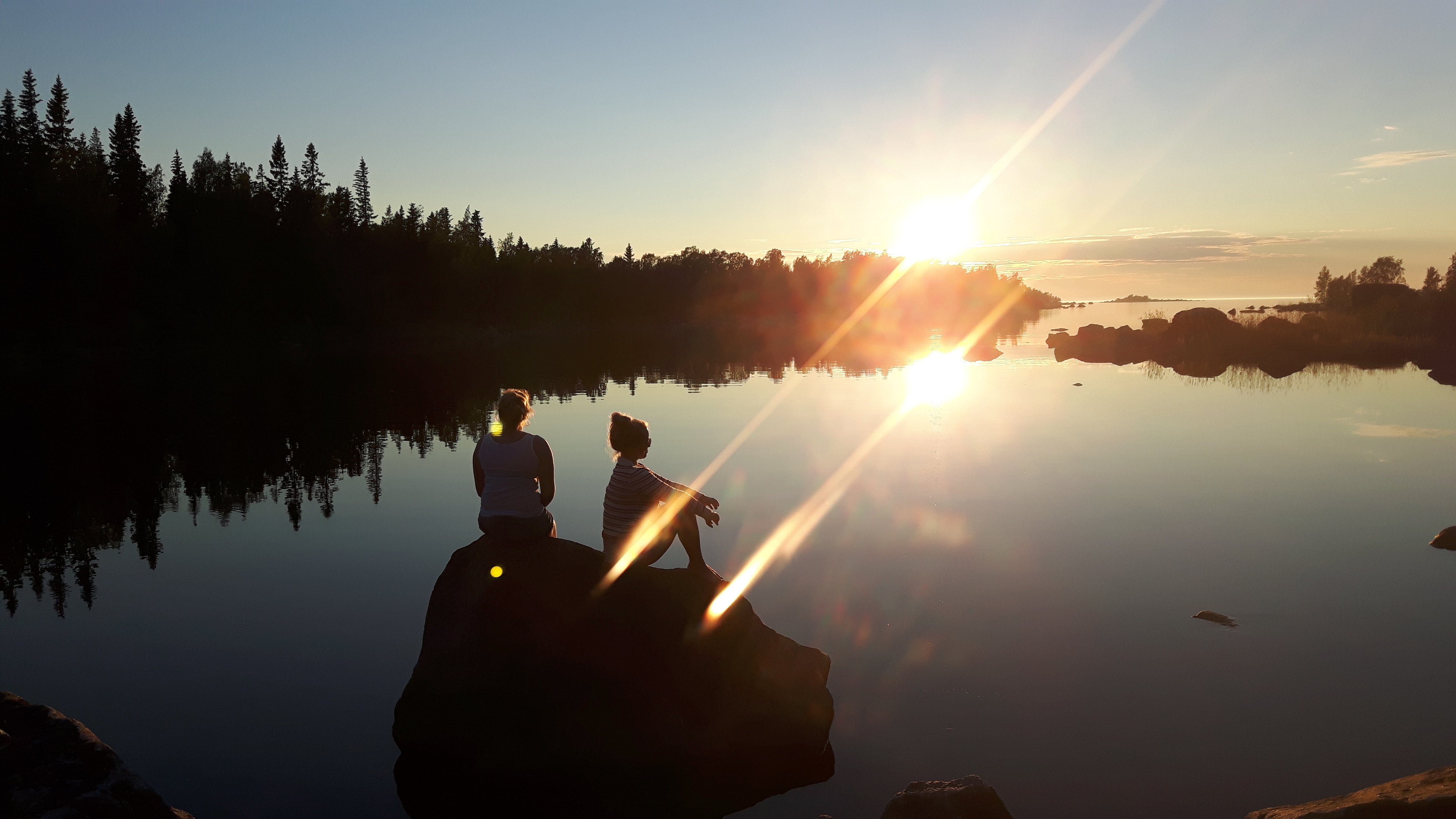 Godmorgon från en solig trädgårdsgunga ute på en ö i Bosund skärgård. Sämre ställen har jag minsann bloggat ifrån. Vi är några kompisar som är här och sover över och det känns nästan precis som förr i tiden.