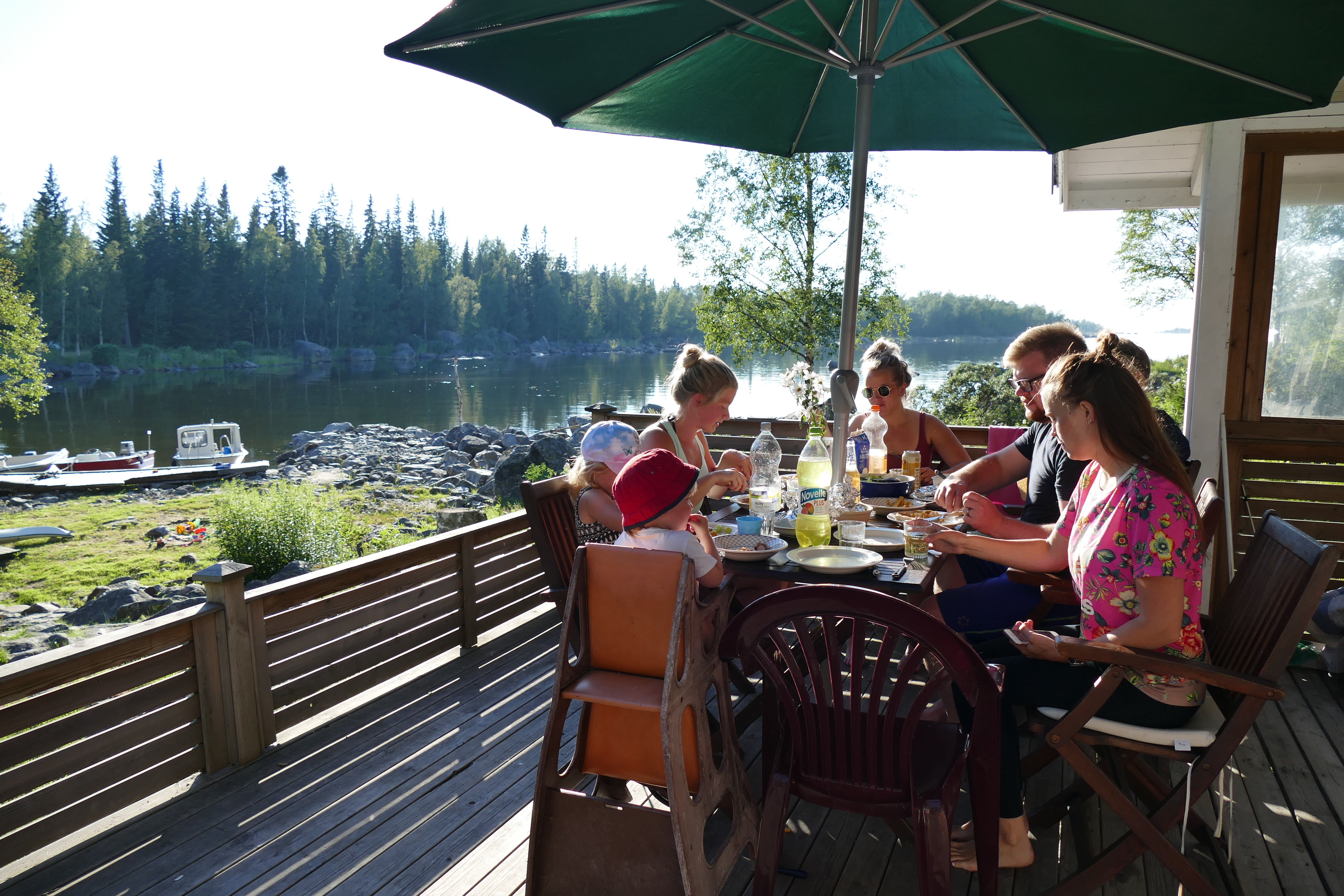 Samma ställe, samma kompisar, men kanske lite godare mat från när vi var 14 och också några barn som underhåller när vi blir för slappa. Härligt soligt väder så jag tror dagen inte blir annat än bra. Vi hörs från fastlandet igen.