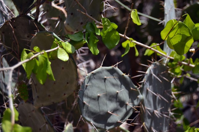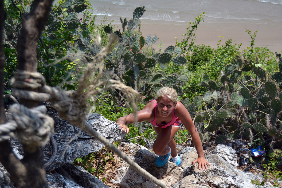 Jag var förvånad att de ens hade märkt ut stigen med skyltar, för det var ingen vanlig promenad det var fråga om, utan hard-core klättring uppför ett stort berg. Vi fick akta oss för var vi satte fötterna för att inte ramla in i taggiga kaktusar eller falla ner i nån av de många grottorna.