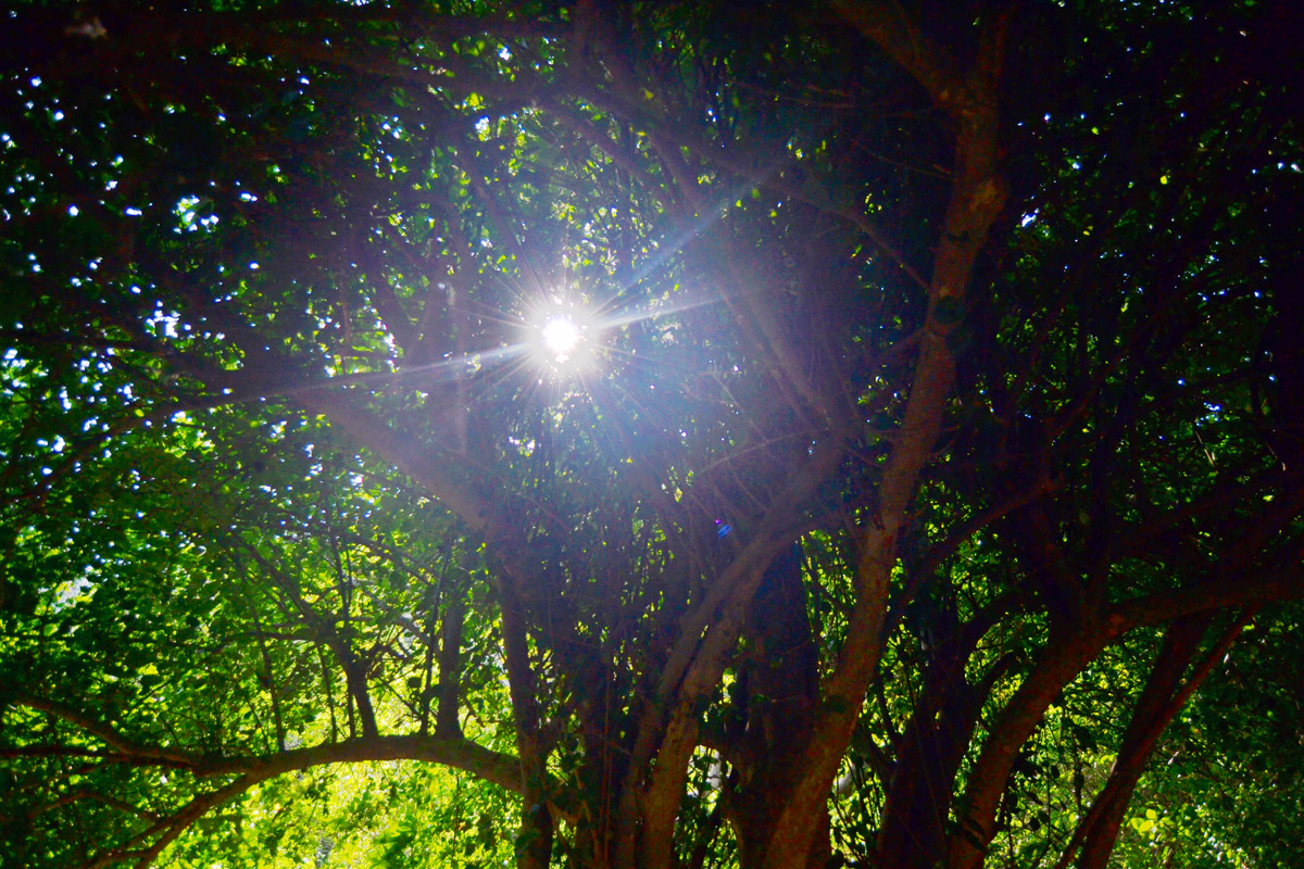 Som jag berättade hittade vi en vandringsled igår, och beslöt oss för att testa den idag på förmiddagen medan vi väntade på vinden. Vi knöt något annat på fötterna än flip-flops och började där vi sett den utmärkta stigen. Det som mötte oss var solen som vackert strålade genom gröna blad och fjärilar i mängder som flög runtomkring oss.