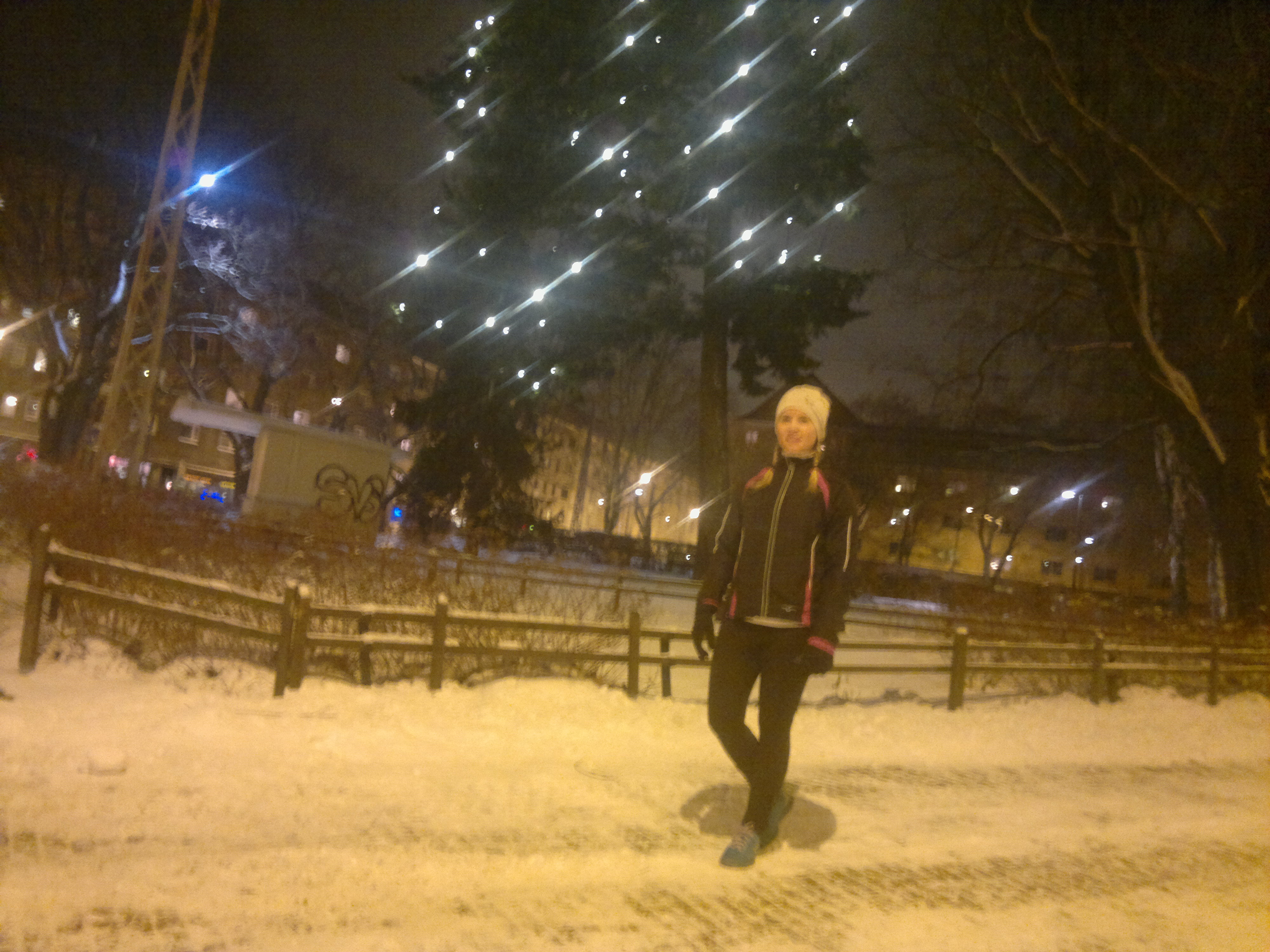 Men vi testade, jag och mannen. Man brukar ju prata om att ta en kort och snabb runda eller en lång och långsam runda, men idag blev det faktist en både kort och långsam runda, haha! När vi fått upp värmen under den första kilometern märkte jag att det inte var så tokigt heller. Ganska mysigt ändå med snöknarr under skorna och stjärnor på den mörka Helsingforshimlen. Synd bara att benen blev till isklimpar även om jag hade både långkalsonger och tjocka vintertights. Jag får klä på mig mera nästa gång – eller springa snabbare!